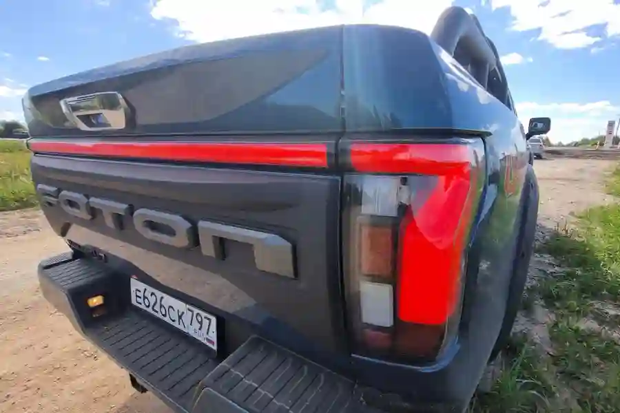 Внешне автомобиль очень похож на своих американских собратьев. Китайские дизайнеры явно вдохновлялись американским Ford F-150, особенно это заметно в передней части автомобиля. Однако, в техническом плане машины совсем разные. Для этого достаточно заглянуть под капот. Там конечно же нет никакого бензинового пожирателя топлива в конфигурации V8, в моторном отсеке стоит скромный турбодизель объемом 2 литра, развивающий 159 л.с. при 410 Нм крутящего момента. Но дизель работает в паре с 48 вольтовой гибридной системой, которая прибавляет еще 60 Нм.