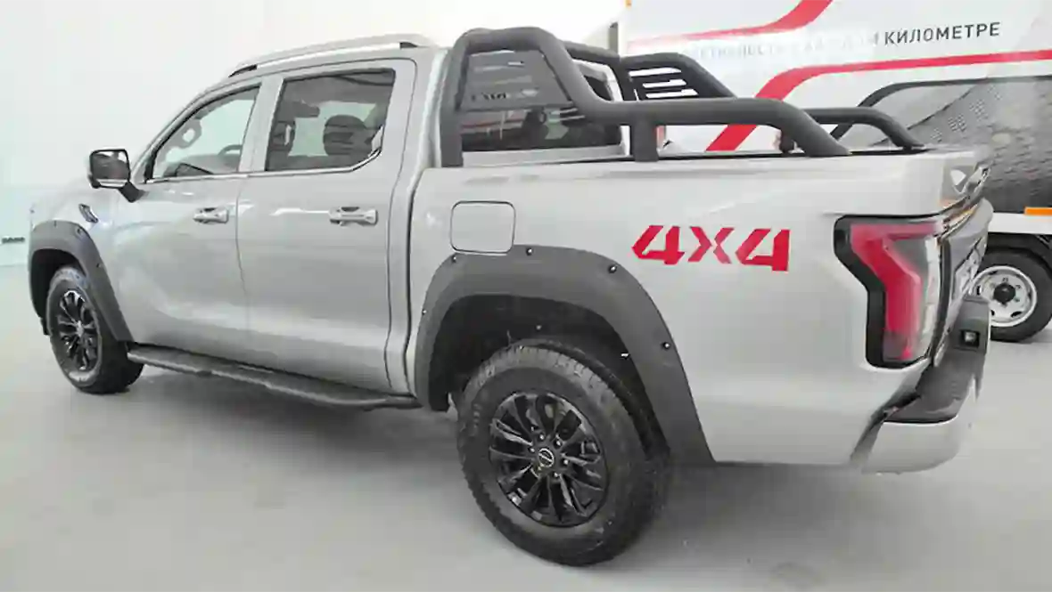 Габариты пикапа V9 достаточно солидные: 5617х2090х1955 мм, колесная база 3355 мм, внутренние габариты грузовой платформы 1577х1650х530 мм (расстояние между колесными арками 1240 мм), хотя при установке опциональных дуг безопасности эти параметры, конечно, уменьшаются.